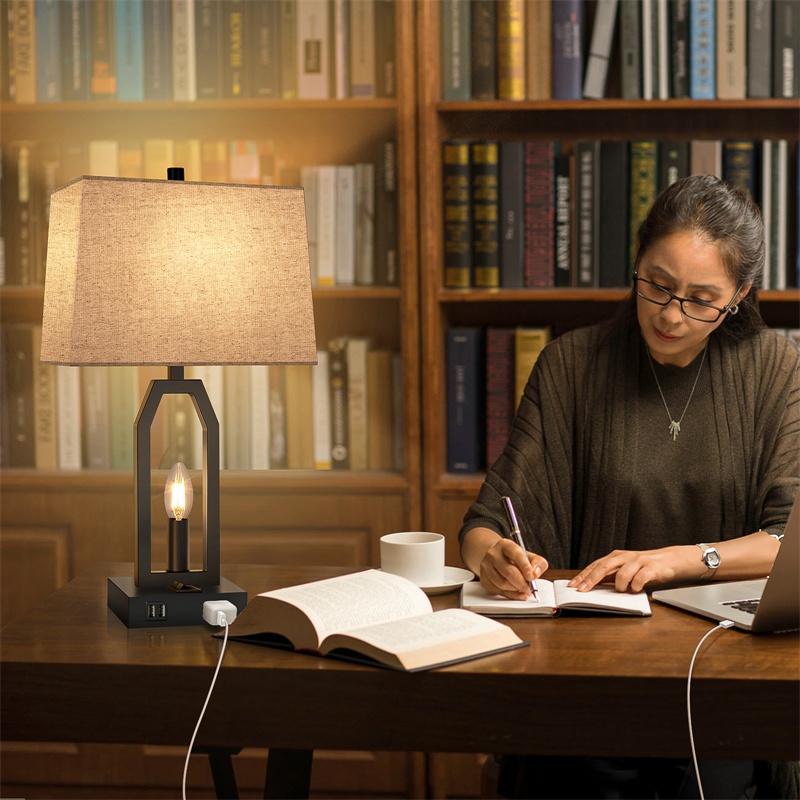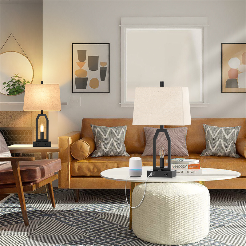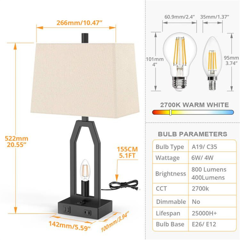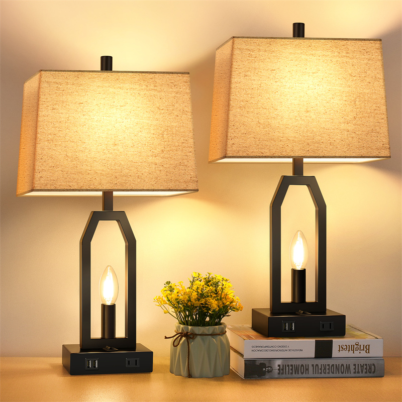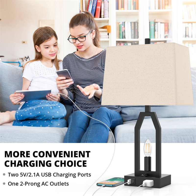 Each lamp base is designed with two 5V/2.1A USB charging ports and one safe 2-prong AC outlet to give your more choice for your charging needs, so you can charge your multi devices at the same time, such as phones, iPad, laptop, Kindle, humidifiers.